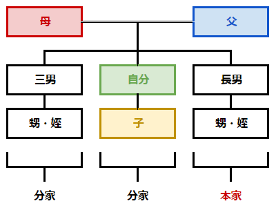 この場合は自分が「分家」で長男が「本家」となる場合が多いです。