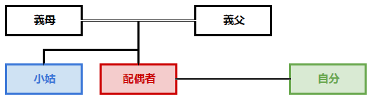 上記の青色の続柄が「小姑」となります。