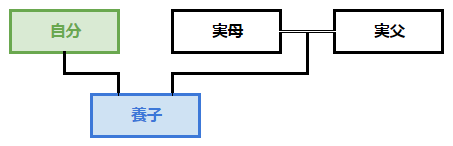 家系図上で自分から「養子」を辿ってみると、「自分→養子」と1親等離れていることがわかりますね。