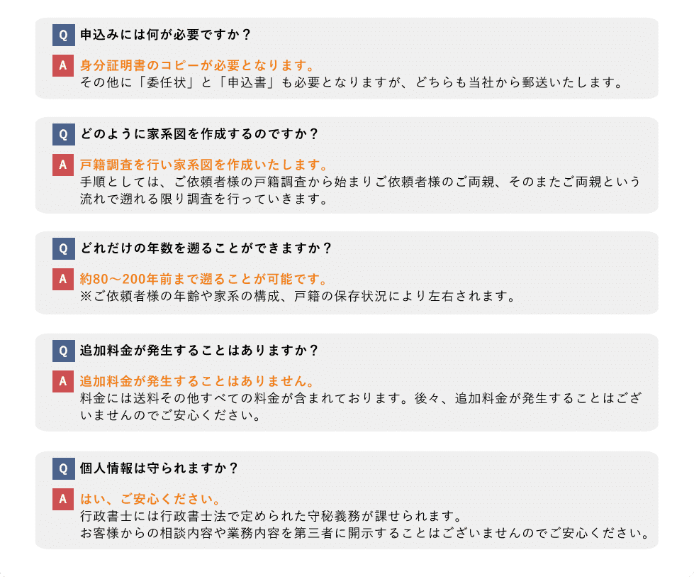 1つの家系調査プラン【¥39,800(税別)】